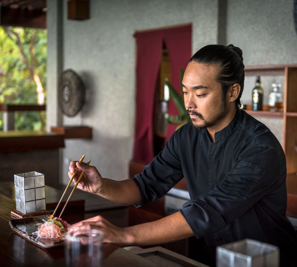 Amanpulo offers diverse dining options, from Filipino and Asian specialties at The Clubhouse to Mediterranean flavors at The Beach Club and seasonal Japanese dishes at The Lagoon Club.