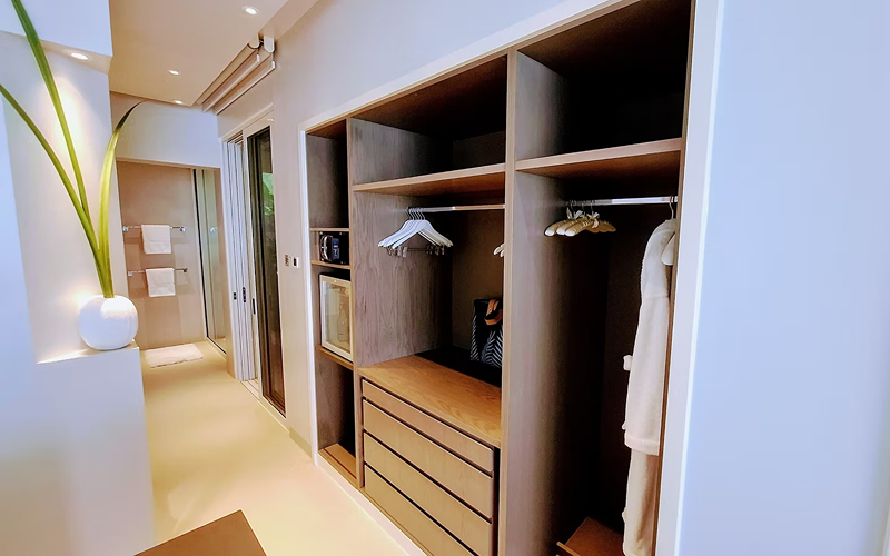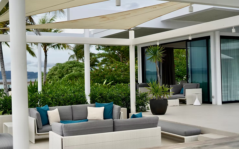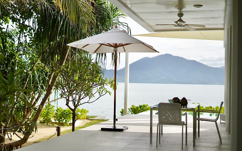 Axis Garden Rooms provide flexible overflow accommodation with 12 elegantly appointed en-suite rooms in double or twin layouts, ideal for guests needing additional space without sacrificing Banwa Private Island’s design aesthetic. What makes them unique is their dedicated communal area, complete with a private freshwater pool, lounge, full kitchen, and BBQ deck with a pizza oven. Overlooking manicured gardens and the short-game golf course, this cluster combines convenience and connection while preserving the island’s signature serenity.