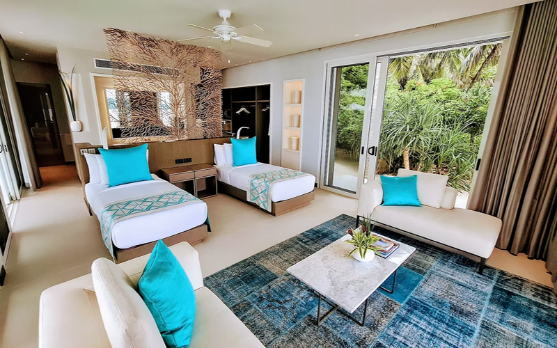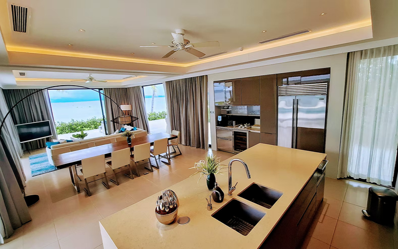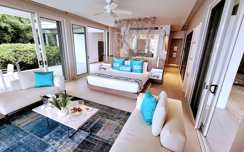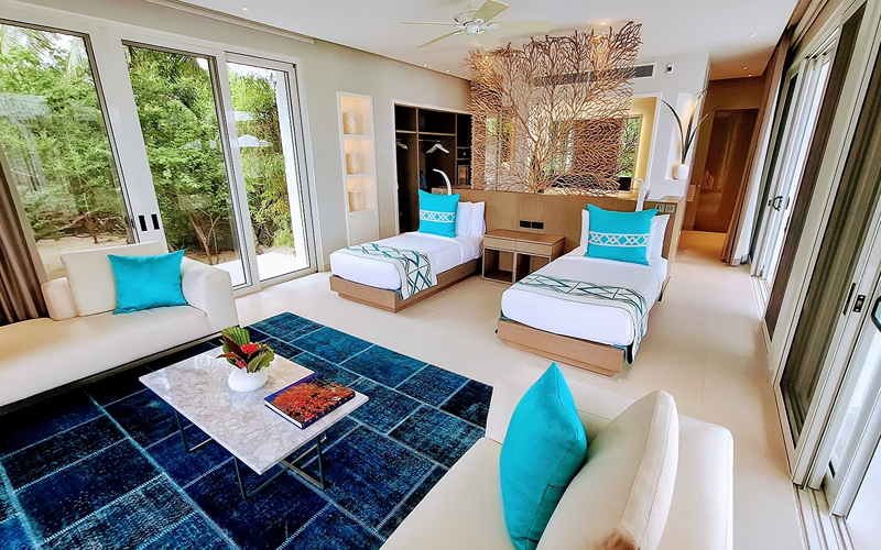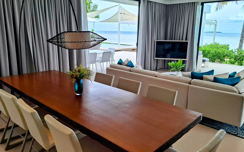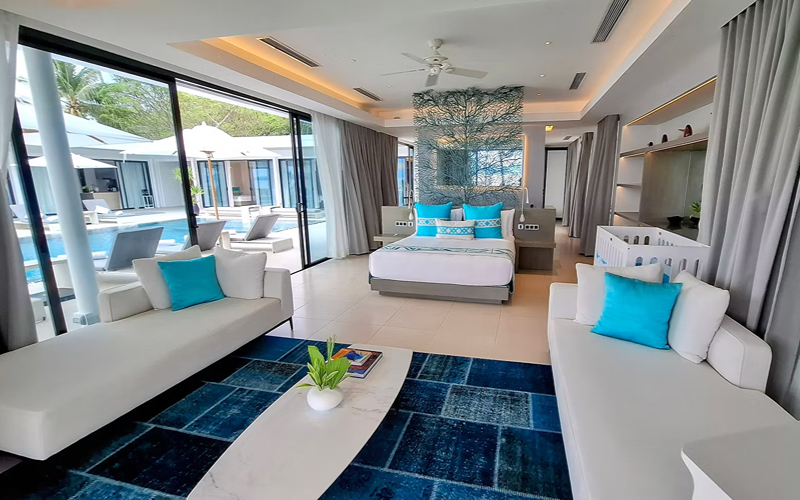 Families and groups are best accommodated in the South and North Villas, which feature multiple bedrooms, expansive living areas, and direct beach or garden access. Axis Garden Rooms also provide flexible overflow space with communal amenities like a pool, lounge, and BBQ deck, making them ideal for support staff or extended family. Child-friendly activities and customized family experiences can be arranged in advance.