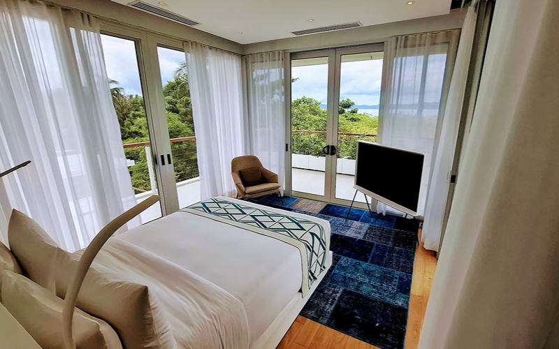 South Two Villa stands out as the perfect choice for families or groups, with its rare two-bedroom layout complemented by generous shared living areas. Beyond its elegant interiors, the villa offers multiple outdoor spaces including a reading deck, jacuzzi deck, and a dining Sala set within lush gardens. Its private pool with panoramic ocean views completes the experience, blending social connection with the island’s signature sense of seclusion.