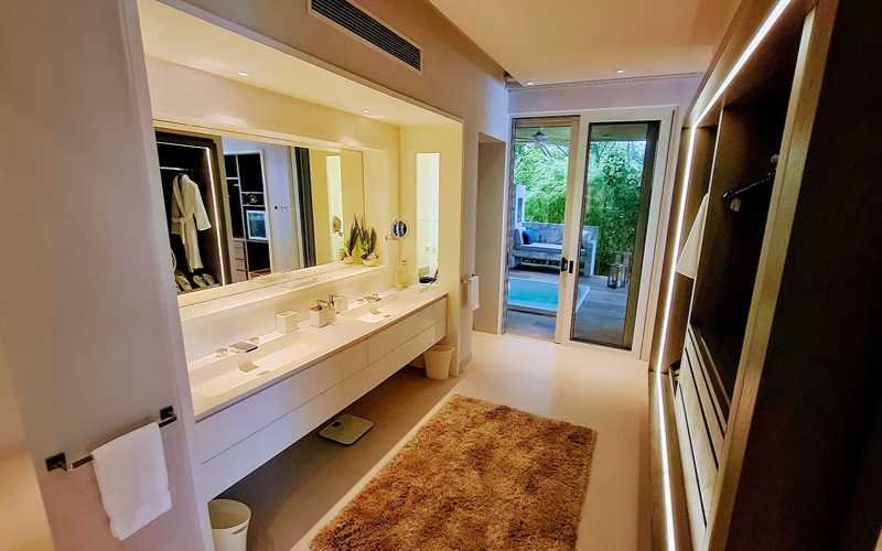 South West Villa does not only offer the largest capacity among the island’s villas, but also an exceptional sense of privacy and harmony with nature. With its spring-fed infinity pool, expansive garden terraces, and direct beachfront access, it provides a seamless indoor–outdoor living experience, making it the ultimate sanctuary for luxury and tranquility.