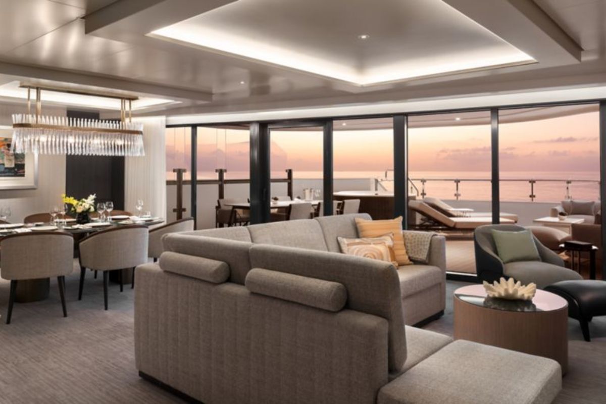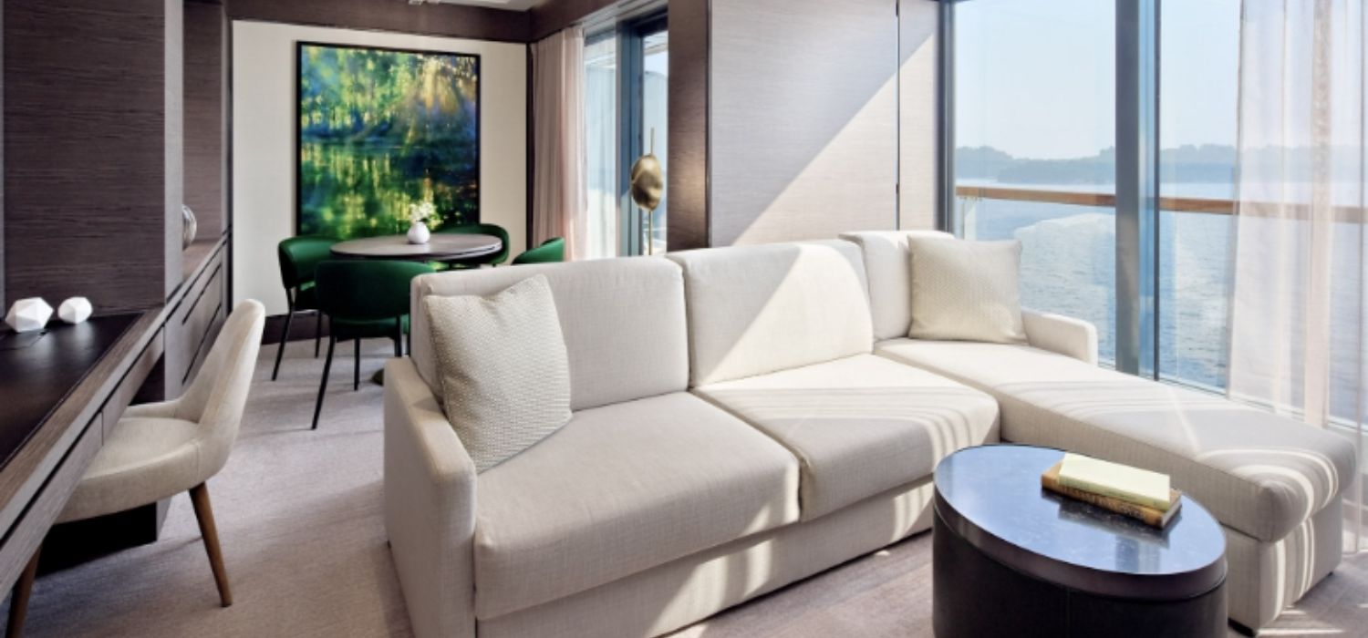 All accommodations on Luminara are ocean-view suites, designed for luxury with private terraces. Types and capacities (pricing from $17,200 per guest, double occupancy; subject to change):