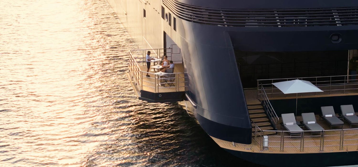 • Marina Platform: An expanded aft marina for direct sea access, ideal for watersports such as kayaking, paddleboarding, and snorkeling. It also serves as a venue for cocktails, light bites, and events like outdoor parties. This is complimentary for guests.