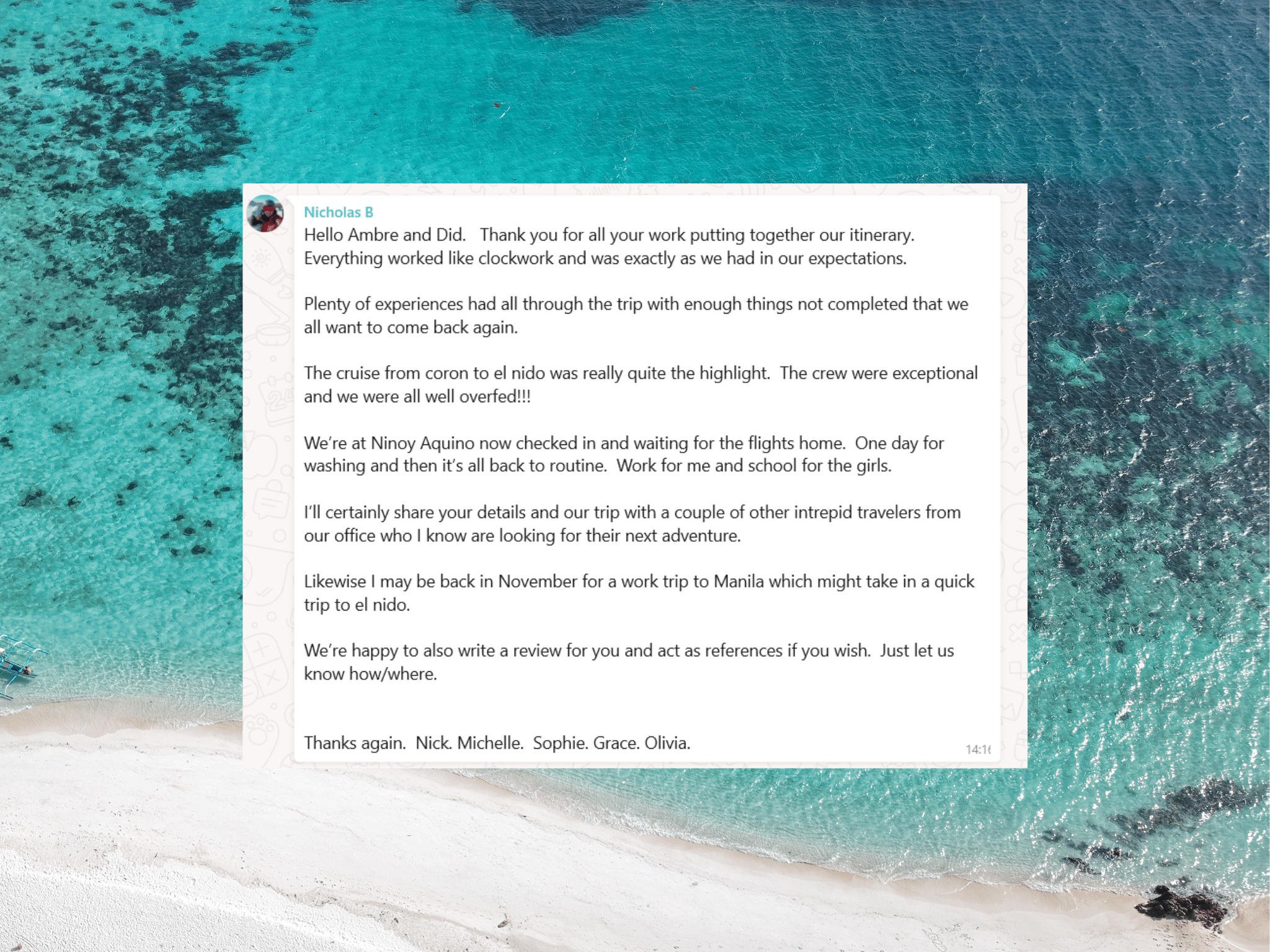 Some testimonials and albums from guests that booked our Sunreef 60 for private charter in the Philippines