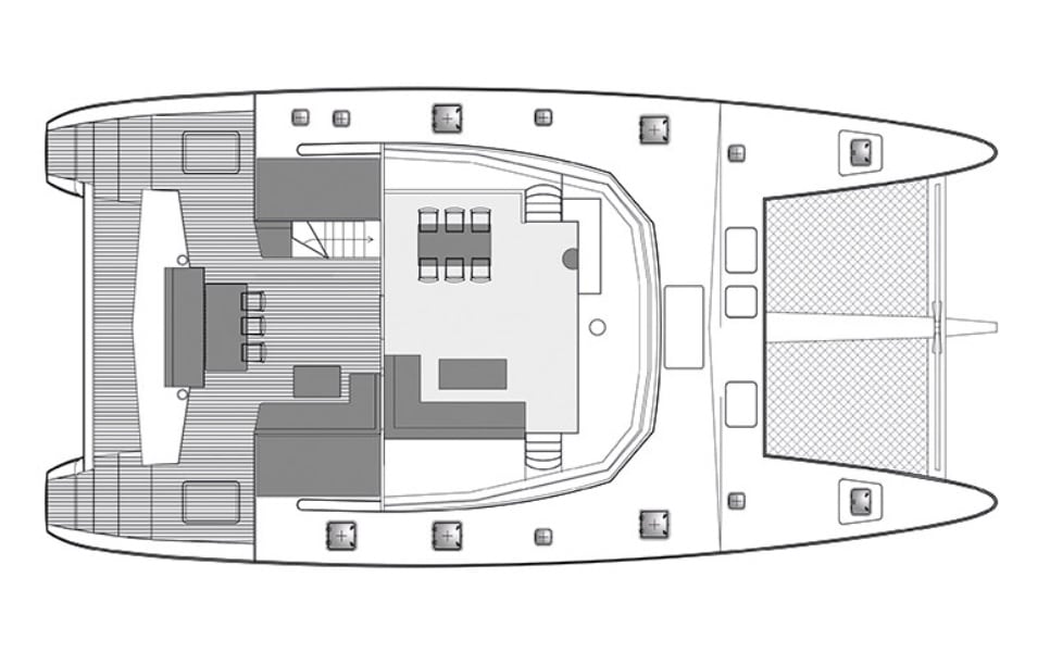 Beyond the water, unwind with premium entertainment: enjoy seamless connectivity with Starlink internet, catch up on your favorite shows on the TV, set the perfect mood with a portable sound system, and gather for fun-filled evenings with a selection of board games. Every detail is considered for your memorable journey.