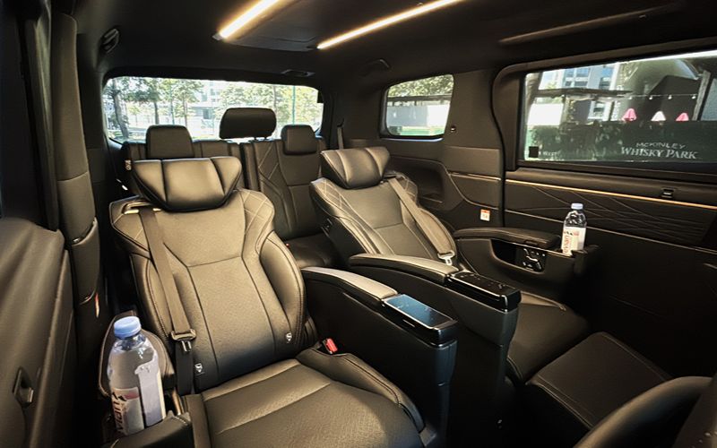 The vehicle comfortably accommodates up to 5 passengers, with 2 VIP captain seats featuring massage functions for enhanced comfort and space.