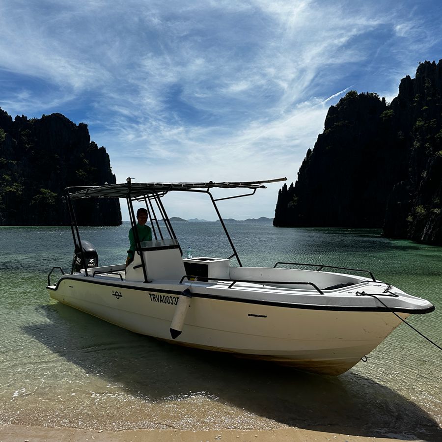 Discover the islands of Coron and Busuanga in total comfort aboard our brand-new Trevally 25 (2017 model), a stylish and powerful private speedboat designed for unforgettable adventures on the water. Fast, comfortable, and fully equipped, this exclusive charter is perfect for island hopping, luxury day cruises, snorkeling escapes, beach picnics, private transfers, and tailor-made experiences around Coron.