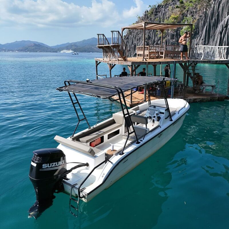 Discover the islands of Coron and Busuanga in total comfort aboard our brand-new Trevalli 25 (2027 model), a stylish and powerful private speedboat designed for unforgettable adventures on the water. Fast, comfortable, and fully equipped, this exclusive charter is perfect for island hopping, luxury day cruises, snorkeling escapes, beach picnics, private transfers, and tailor-made experiences around Coron.