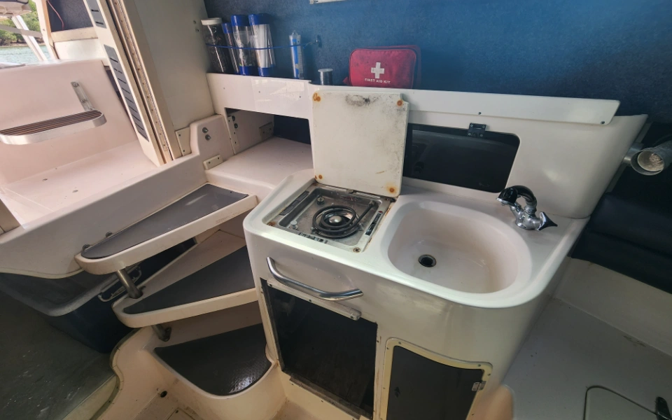With its impressive 600 hp engines, it cruises comfortably at 25 knots, reaching a maximum speed of 40 knots, allowing you to swiftly reach destinations like El Nido or any secluded island in Linapacan. Built in 2003, this vessel combines reliability with modern amenities. Despite its speed, it's designed for comfort, accommodating up to 12 guests.