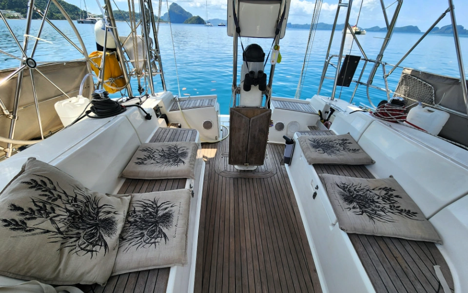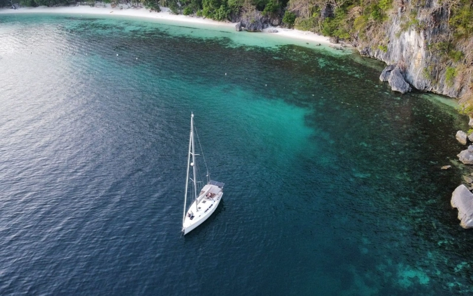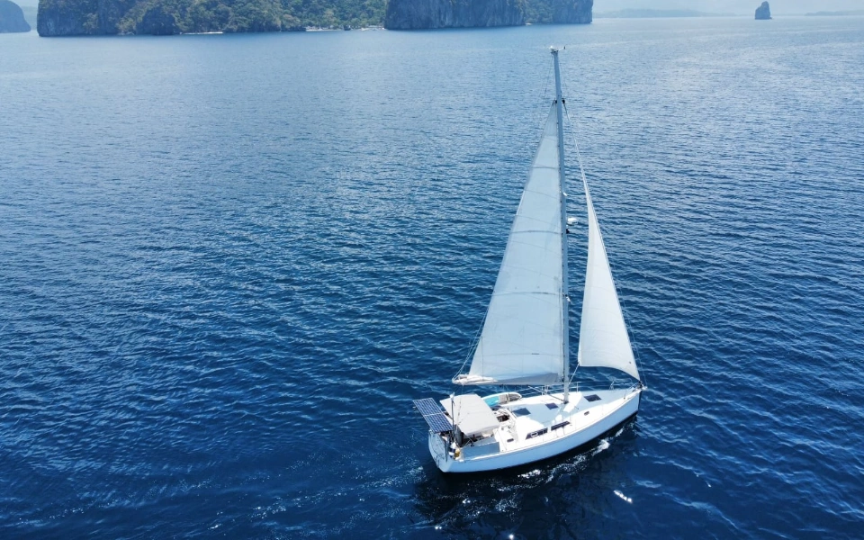 Charter the Hans 400 for a brief sailing adventure in El Nido Bay. It comfortably accommodates up to 3 individuals for an overnight stay, offering sleeping arrangements for two guests in the main cabin and one guest in the salon.